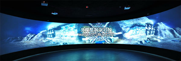 環(huán)幕(立體)投影系統(tǒng)是一種視聽高度沉浸的虛擬仿真顯示環(huán)境,采用多臺(tái)投影(通道)組成的環(huán)形投影屏幕,環(huán)形幕半徑通常有100~360弧度不等,由于其屏幕半徑寬大,觀眾的視覺完全被包圍,再配合環(huán)繞立體聲系統(tǒng),使參與者充分體驗(yàn)一種高度身臨其境的三維立體視聽感受,獲得一個(gè)具有高度沉浸感的虛擬仿真可視環(huán)境,是傳統(tǒng)平幕顯示設(shè)備不能比擬的,環(huán)幕投影最重要的應(yīng)用就是立體投影系統(tǒng)。