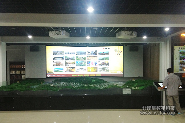 電子多媒體沙盤、沙盤燈光控制系統(tǒng)、沙盤燈光渲染系統(tǒng)、大屏幕投影拼接系統(tǒng)、32寸多點觸摸查詢系統(tǒng)、3D高清宣傳視頻等,安裝完畢后,展廳現(xiàn)場效果優(yōu)異,獲得了甲方的一致好評。