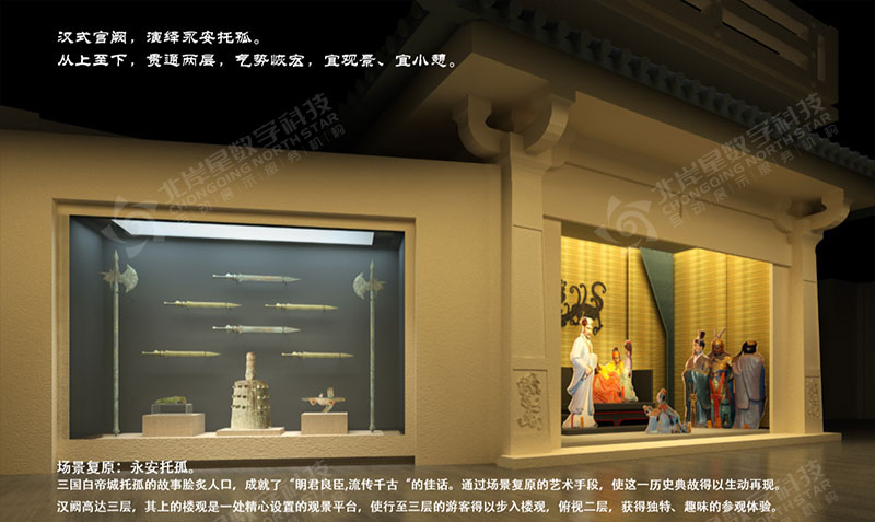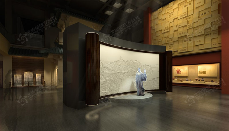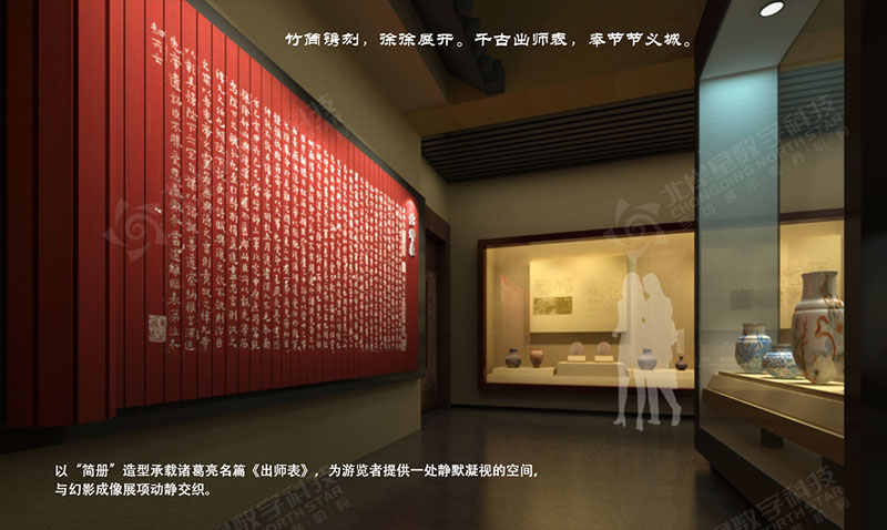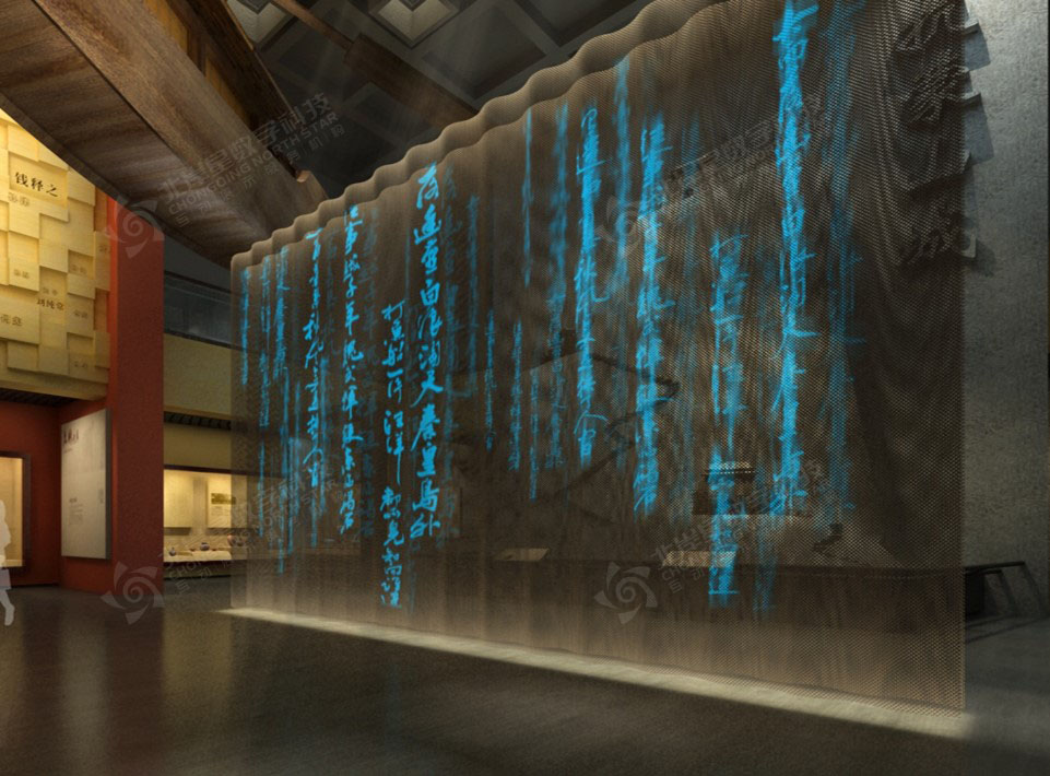 項目包含9米高的L折幕、全息紗幕投影、3D動畫制作、航拍視頻、互動書法簽名系統(tǒng)、AR互動拍照系統(tǒng)、觸摸屏軟件查詢系統(tǒng)、詩詞查詢系統(tǒng)、文化遺址電子沙盤、ipad無線全館設(shè)備及燈光中控系統(tǒng)、水墨動畫等……