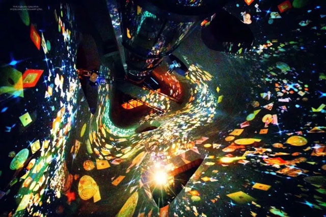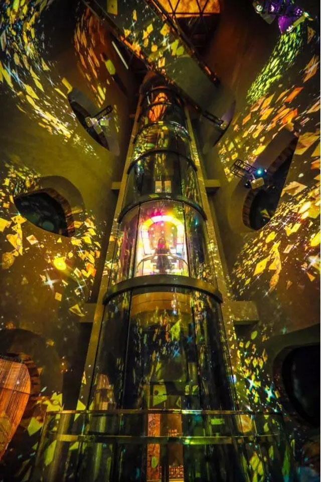 “無限之境“利用藝術(shù)中心的觀光電梯天井,打造了一個全世界獨一無二的時空隧道,可以通過地面和乘坐電梯兩種方式觀展,打破常規(guī)的展覽方式,帶來不一樣的觀展體驗。
