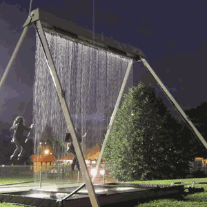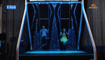 水簾秋千又稱瀑布秋千(Waterfall Swin),秋千深得大人孩子的喜歡, 則創(chuàng)造性地將瀑布與秋千結(jié)合到一起。秋千上方裝有監(jiān)測(cè)器,能夠捕捉蕩秋千之人的特征、速度等信息,計(jì)算水的降落時(shí)機(jī),既營(yíng)造了獨(dú)特的空間,又不會(huì)淋濕,非常有趣。