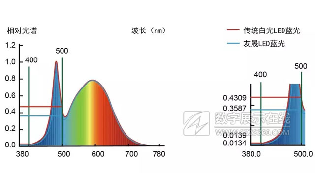 藍(lán)光過濾400nm-500nm波段的藍(lán)光,有效緩解藍(lán)光對視網(wǎng)膜造成的中長期損傷。