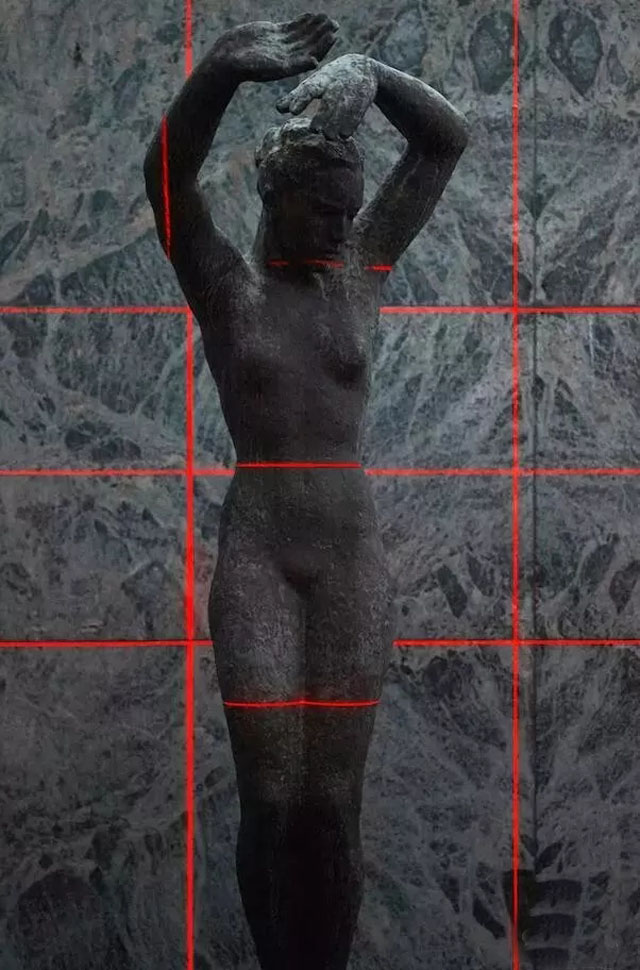 展館內(nèi)的雕塑也是當(dāng)時(shí)設(shè)計(jì)的特點(diǎn)之一。館內(nèi)格奧爾格·科爾貝(Georg Kolbe)的雕塑作品“黎明(Der Morgen)”被放置在較小水池中,它映在了周圍的大理石墻面和空曠的水面上,使得雕塑和建筑景觀融為一體,成為了空間設(shè)計(jì)的一部分。“燈光幾何”秀也把激光網(wǎng)格打在了這個(gè)雕塑上 ,使它所在的空間有了另一種劃分。