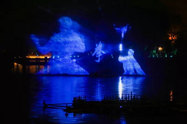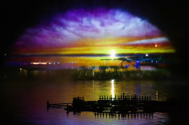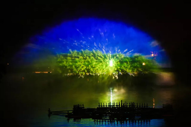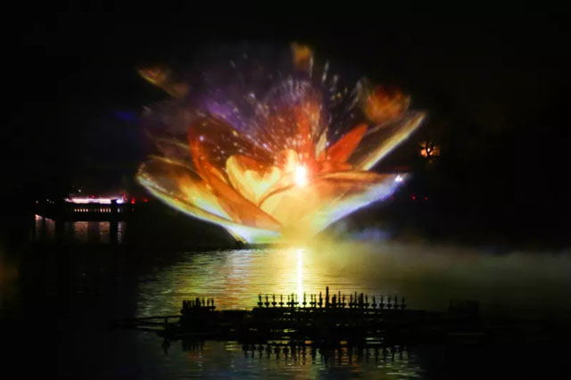 玉湖景區(qū)3D噴泉投影燈光秀新會(huì)首期亮化工程中“兩極一軸”的“城市創(chuàng)新極”的亮點(diǎn)。燈光秀以“古城新篇 攬景勝會(huì)”為主題,通過六個(gè)篇章,串起新會(huì)文化脈絡(luò)。