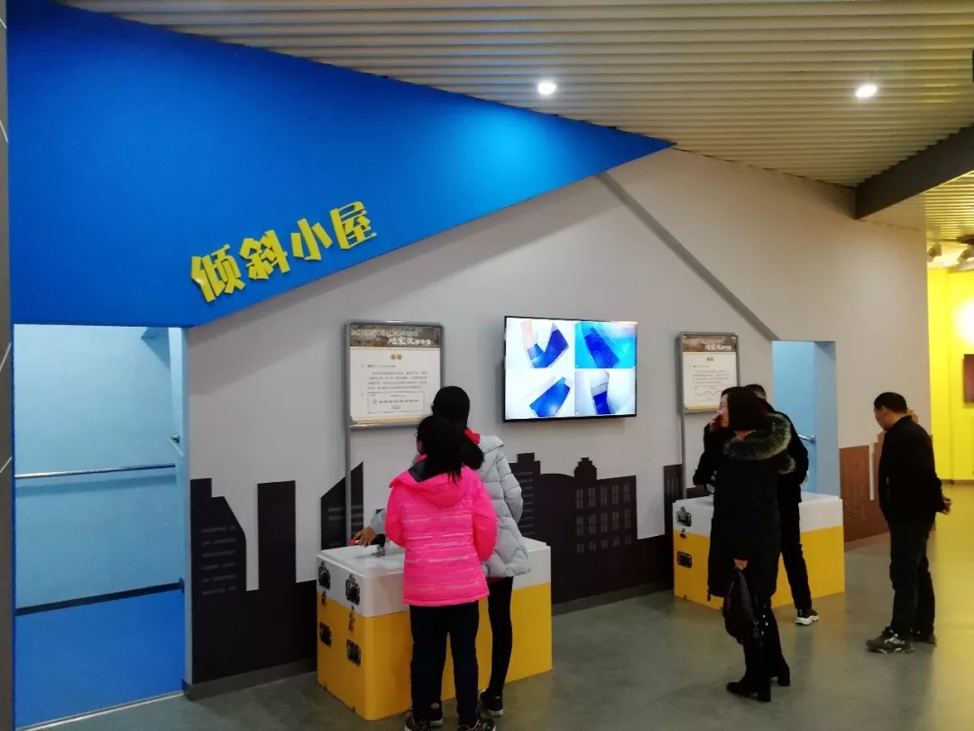在科普廳,除了VR體驗(yàn),還有更多互動(dòng)式項(xiàng)目。其中“傾斜的小屋”從外面看只是一間普通的小屋,并沒(méi)有什么特殊的地方?墒窃S多參觀者興沖沖地從入口進(jìn)去后,出來(lái)時(shí)都覺(jué)得頭暈?zāi)垦、站立不穩(wěn)。講解員道出了其中的秘密,原來(lái)人的行動(dòng)受大腦指揮,當(dāng)人們進(jìn)入傾斜小屋后,雖然地板有傾斜,但看到墻面與小屋的地面是垂直的。相互矛盾的信息匯集到大腦中,使大腦不能發(fā)出正確指令,才會(huì)讓人感到行走困難。
