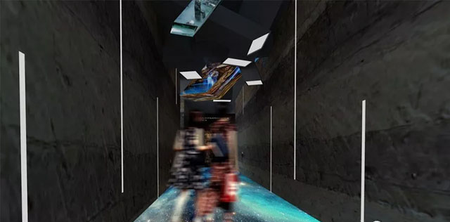 借助時(shí)空互動(dòng)隧道,讓參觀者體驗(yàn)穿越感,隧道的地面星光流動(dòng),像是走在時(shí)空隧道中,墻面演繹著當(dāng)?shù)氐牡刭|(zhì)元素億萬(wàn)年來(lái)的變遷,即使靜止不動(dòng)也能感受飛速移動(dòng)變換。