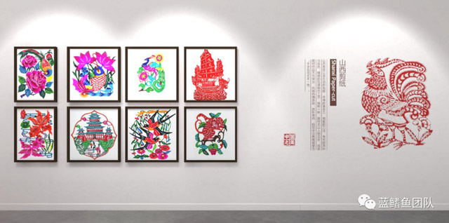 藍鰭魚《民間剪紙藝術展VR》匯集了河北、陜西、山西、內蒙、江浙、福建、廣東等地的全國南北7大剪紙流派的典型剪紙作品,每幅作品栩栩如生。每一個地區(qū)也有自己的代表人和代表作品,詳細的講解了當地的特色和發(fā)展史。