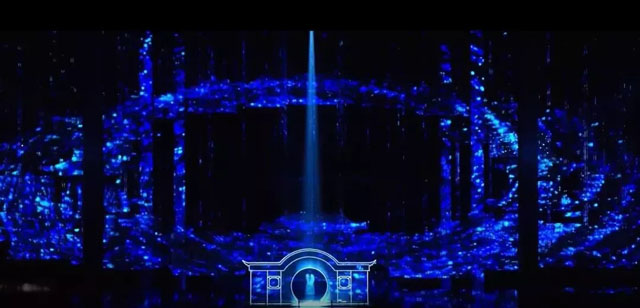 設計立意前期,張藝謀導演摒棄了傳統(tǒng)舞美以顯示大屏為主的舞臺設計方案,幾經(jīng)易稿,刪繁就簡,最終確定把洲明薔薇格柵屏“超級圓月”作為載體,融入三峽舞臺的山水之間。