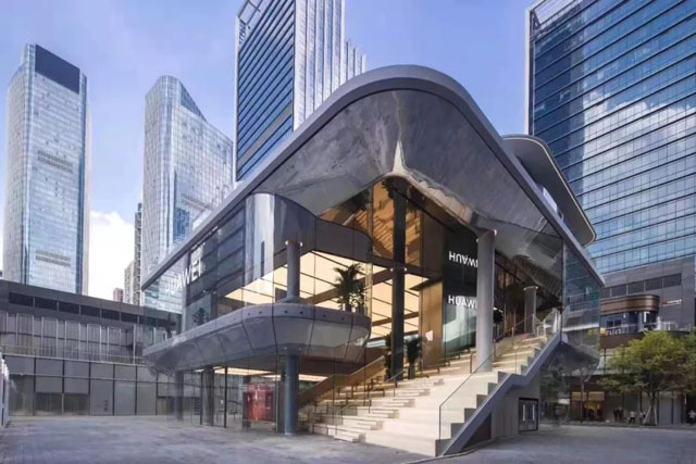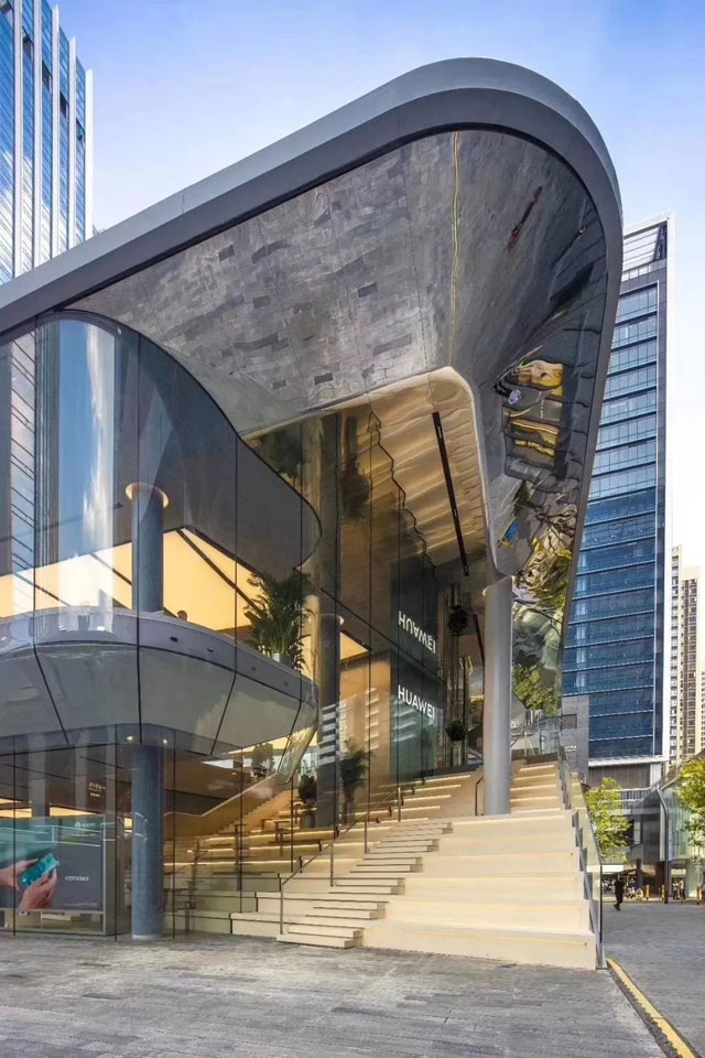 華為全球旗艦店位于深圳萬象天地,這是華為在全球的首家5G產(chǎn)品直營店,以“城市廣場”為設(shè)計理念,建筑外立面采用了大面積玻璃幕墻,看上去像一個透明的玻璃盒,非常通透,以求消費者能夠近距離了解華為的文化。金螳螂承接了本項目的土建、內(nèi)裝修、機電、消防、暖通施工。