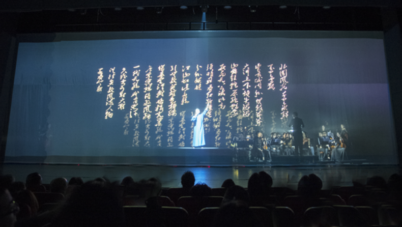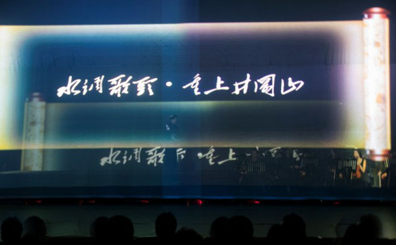 整場演出突破以往傳統(tǒng)劇目創(chuàng)作手法,緊跟時(shí)代,推陳出新,運(yùn)用蘇州評(píng)話和蘇州評(píng)彈結(jié)合交響樂隊(duì),使用全新舞美、全息投影的藝術(shù)形式來貫穿舞臺(tái),特別是全息投影將毛體書法呈現(xiàn)在空氣幕布,洋洋灑灑,氣勢非凡,美輪美奐。傳統(tǒng)評(píng)彈與西洋音樂的結(jié)合不僅給觀眾帶來視、聽的美好感受,也在評(píng)彈與現(xiàn)代舞臺(tái)的結(jié)合方面做了創(chuàng)新實(shí)踐,使得年輕人能夠喜歡并接力綻放評(píng)彈藝術(shù)。