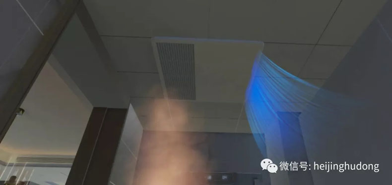 通過3D建模技術(shù)還原整個(gè)廚房場(chǎng)景,再將生活中常發(fā)生的“炒菜后油煙滿屋”情況進(jìn)行模擬。