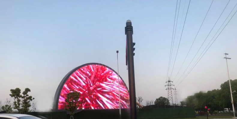 由湖州南太湖控股集團有限公司建造的湖州首個異形LED顯示屏正式點亮。該顯示屏位于湖山大道與三環(huán)北路交叉口,高13米,寬24米,屏面積約250㎡,為湖州市首個半圓異形大屏。