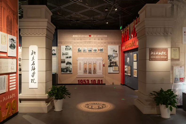 校史館建筑面積3490平方米,由前廳、序廳、序章、編年體展區(qū)、專題展區(qū)、愿景廳、藝術(shù)館等部分組成。館內(nèi)展示綜合采用現(xiàn)代信息技術(shù)和視覺美學(xué),通過圖文、實(shí)物、多媒體、虛擬影像、立體造型、場景還原等多種方式,集中展現(xiàn)了學(xué)校六十八年來與共和國發(fā)展共命運(yùn)、與祖國石油工業(yè)同呼吸、與石油高等教育共奮進(jìn)的光輝歷程,體現(xiàn)了學(xué)校從首都北京的紅色激情到黃河岸邊的金色豪邁、再到逐夢青島的藍(lán)色暢想,一代代石大人以服務(wù)國家能源戰(zhàn)略為己任,為黨忠誠、為國育才所書寫的奮斗詩篇。