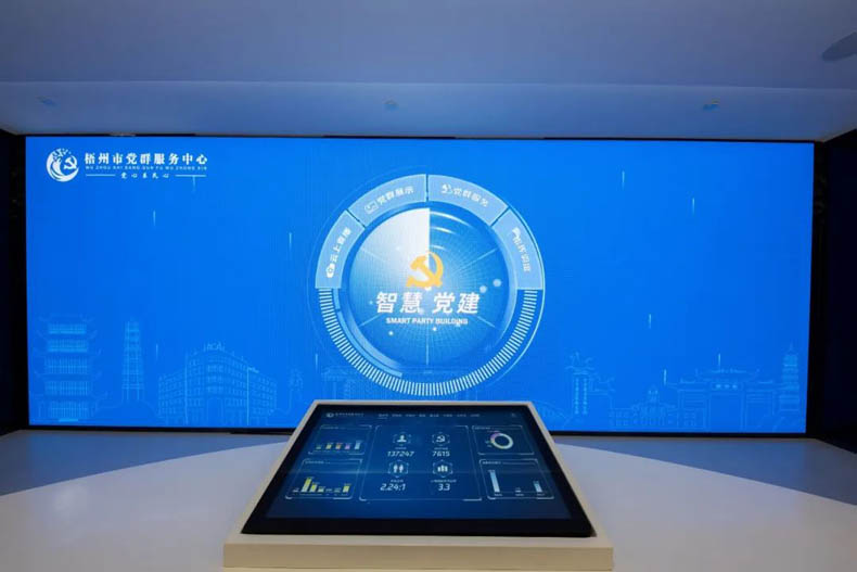 通過(guò)電動(dòng)感應(yīng)門進(jìn)入場(chǎng)館,通過(guò)智慧平臺(tái)實(shí)現(xiàn)指揮調(diào)度、黨群服務(wù)、黨建展示、云上直播等四大功能,智慧黨建系統(tǒng)與智慧城市系統(tǒng)、公共視頻監(jiān)控系統(tǒng)相連接,對(duì)城市治理問(wèn)題統(tǒng)一指揮,統(tǒng)一調(diào)度;可對(duì)智慧農(nóng)村、智慧社區(qū)、梧州黨建網(wǎng)、西江黨群紅等信息服務(wù)平臺(tái)統(tǒng)一管理、統(tǒng)一維護(hù);分析全市黨組織數(shù)及黨員數(shù),展示各單位黨建工作亮點(diǎn)、黨史教育基地紅色資源分布圖等;這里還探索建立了與基層黨組織相連接的智能視頻系統(tǒng),會(huì)議、黨課等同步與基層黨組織進(jìn)行視頻連接。